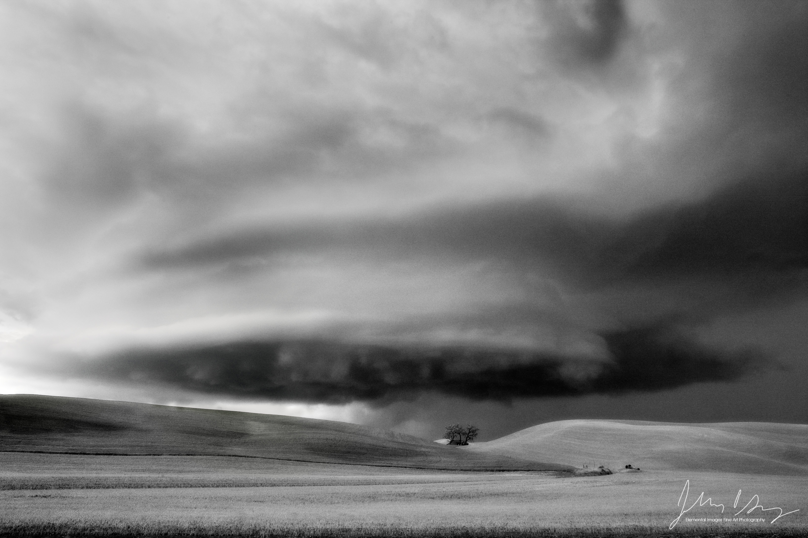 MS782 | Wall cloud of thunderstorm with lone tree | The Palouse WA - © © 2008 Jeff Gracz / Elemental Images Fine Art Photography