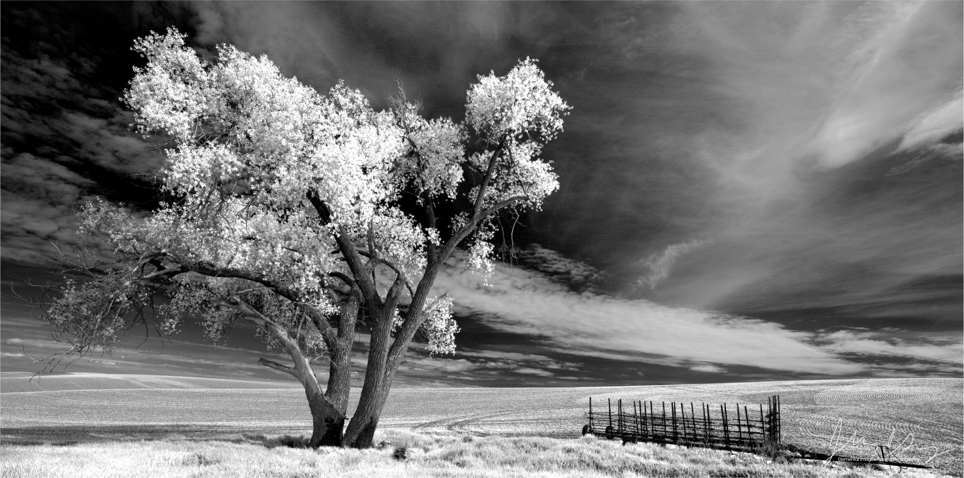 PAN25 | Lone Tree with Farm Machinery | The Palouse WA - © © 2008 Jeff Gracz / Elemental Images Fine Art Photography