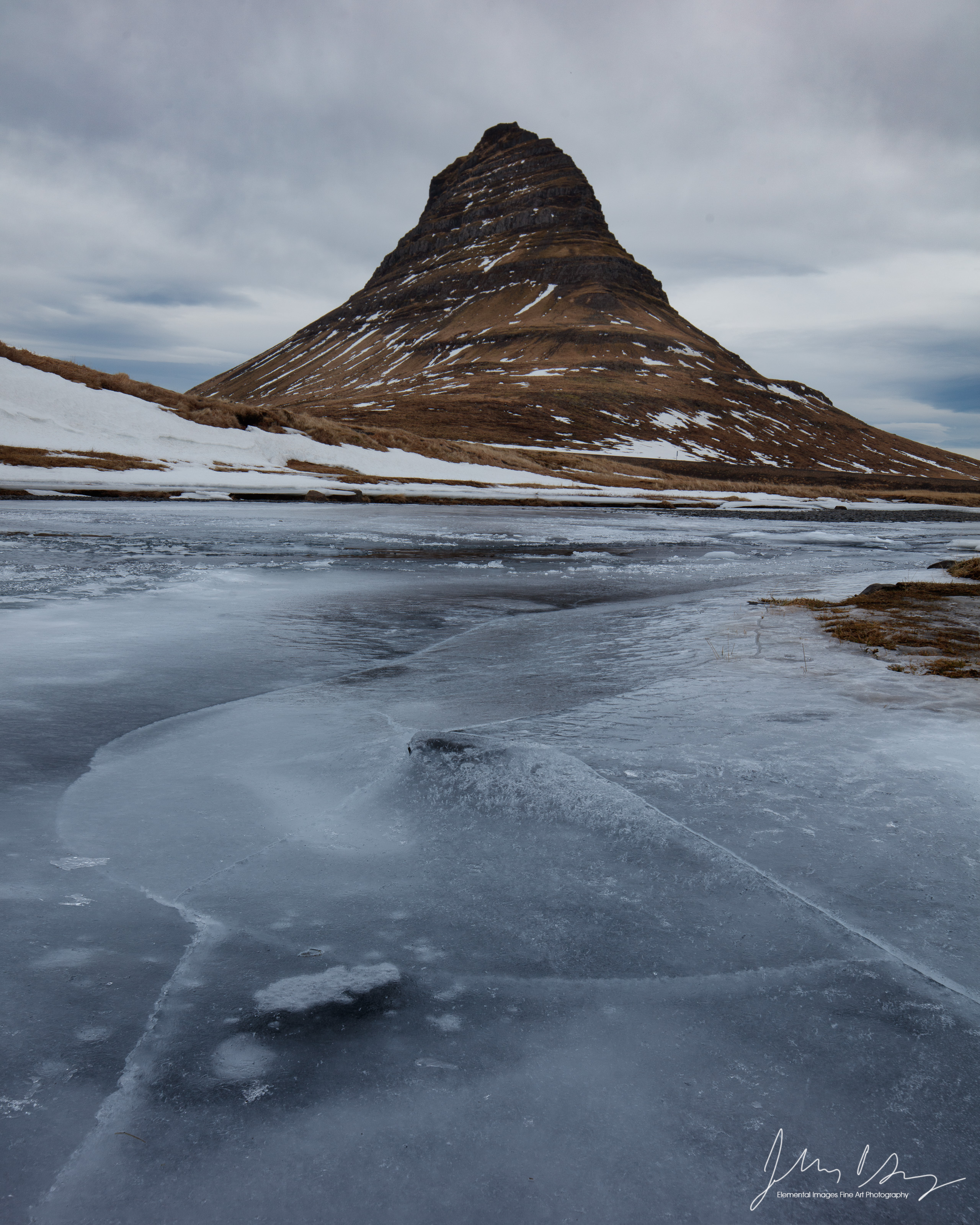 MT174 | Kirkjufell with icy stream | Kirkjufell Grundarfjörđur - © 2024 Elemental Images Fine Art Photography All Rights Reserved Worldwide